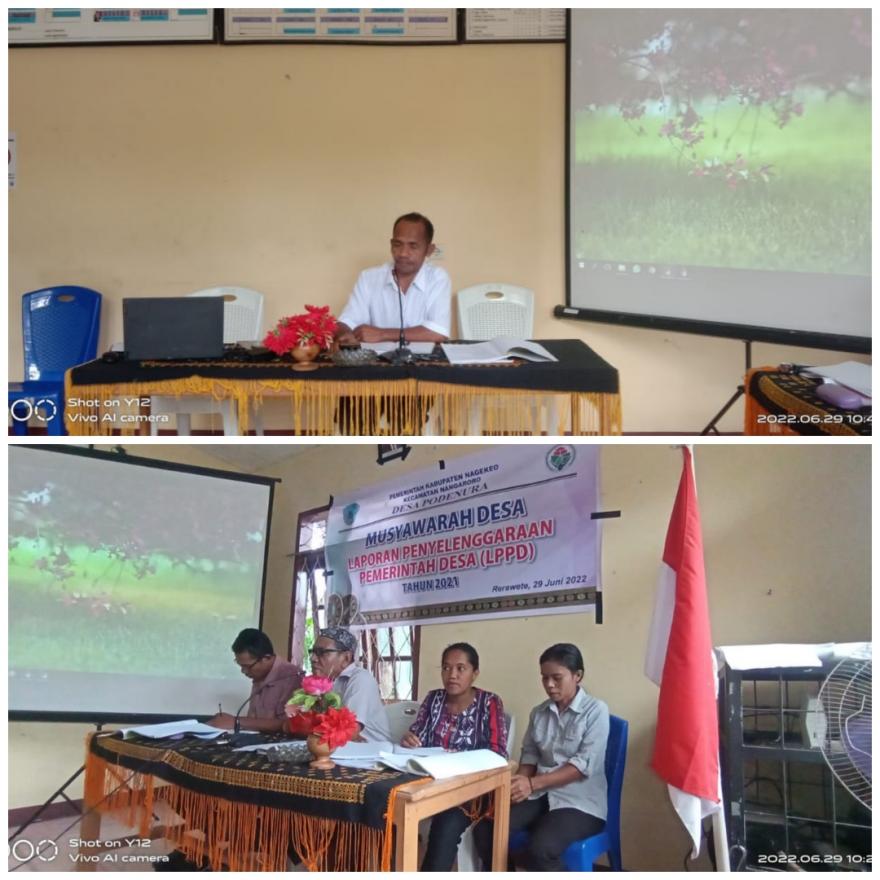 Pemerintah Desa Podenura menyelenggarakan Laporan Penyelenggaraan Pemerintah Desa Tahun 2021 pada Rabu (29/06/2022).Kegiatan ini dihadiri oleh BPD Desa Podenura,Kepala Desa serta perangkat,Ketua RT serta seluruh pelaku program yang ada di desa Podenura