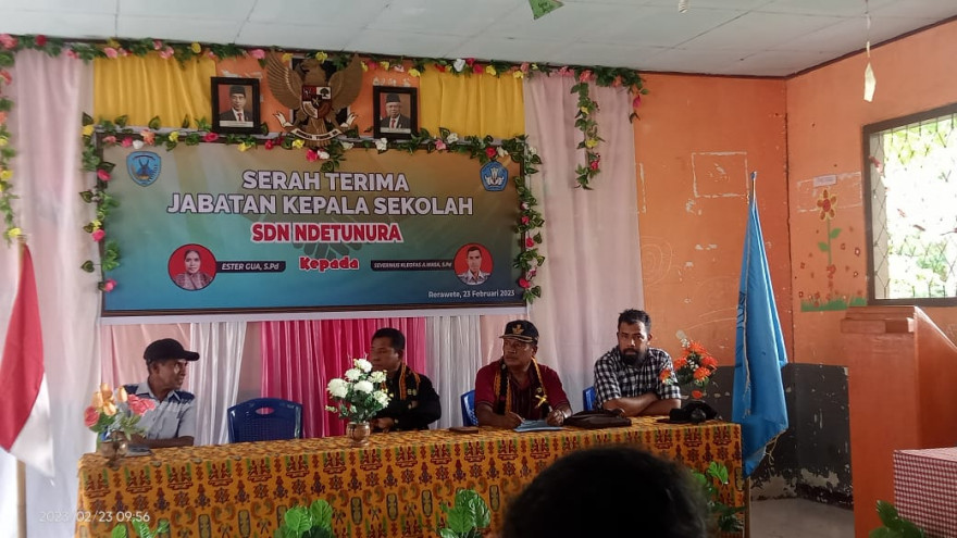Podenura, Bertempat di SD Negeri Ndetunura, Podenura, Kamis (23/02/23) telah dilaksanakan acara serah terima jabatan Kepala Sekolah dari pejabat lama, Ibu Ester Gua, S.Pd, kepada pejabat baru, Bapak Severinus K.Wasa, S.Pd.Kegiatan ini dihadiri oleh Kepala Dinas Pendidikan dan Kebudayaan Kabupaten Nagekeo Venantius Minggu,S.Pd,M.Pd , Pengawas Sekolah tingkat SD Ubaldus Soba, Ketua Komite SDN Ndetunura, Sekretaris Desa Podenura, Ketua Gugus Nangaroro 3, Para Kepala Sekolah SD dan SMP dalam radius Gugus Nangaroro 3, Ketua BPD desa Podenura, Para Guru SDN Ndetunura, Orang Tua Siswa serta beberapa tokoh agama dan tokoh masyarakat.