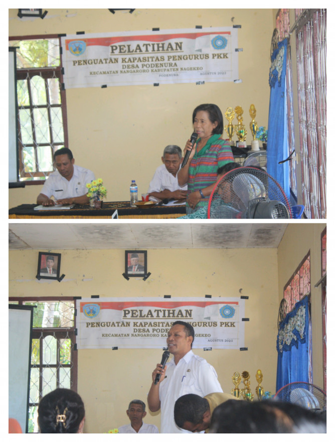 Penjabat Kepala Desa Podenura langsung membuka kegiatan penguatan kapasitas yang diikuti oleh puluhan pengurus dan anggota TP-PKK desa Podenura dan turut dihadir Kepala Dinas PMD PPA, Kabid PPPA dinas PMD Kabupaten Nagekeo, Sekretaris PKK Kabupaten Nagekeo, Kepala UPTD Puskesmas Nangaroro , Sekretaris PKK Kecamatan Nangaroro, Ketua Pokja II PKK Kecamatan Nangaroro.
