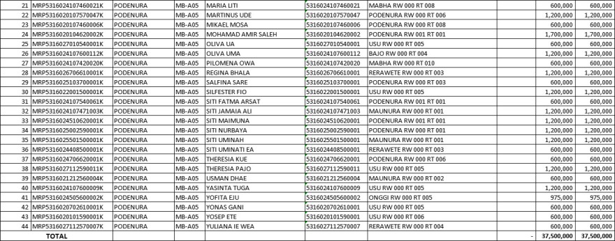 Penerima bantuan wajib hadir sesuai waktu yang ditentukan dan membawa serta dokumen kependudukan seperti KTP ,Kartu Keluarga serta Surat Kuasa untuk perwakilan yang bukan anggota Keluarga .Nama penerima ada dalam gambar