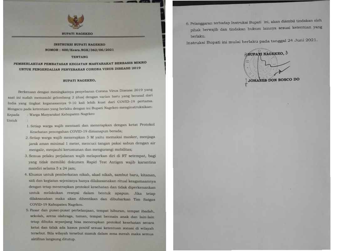 Sosialisasi ini untuk menindaklanjuti instruksi bupati Nagekeo tentang Pemberlakuan Pembatasan Kegiatan Masyarakat Berbasis Mikro untuk Pengendalian Penyebaran Virus Corona menyikapi meningkatnya penyebaran Virus Corona di wilayah kabupaten Nagekeo.