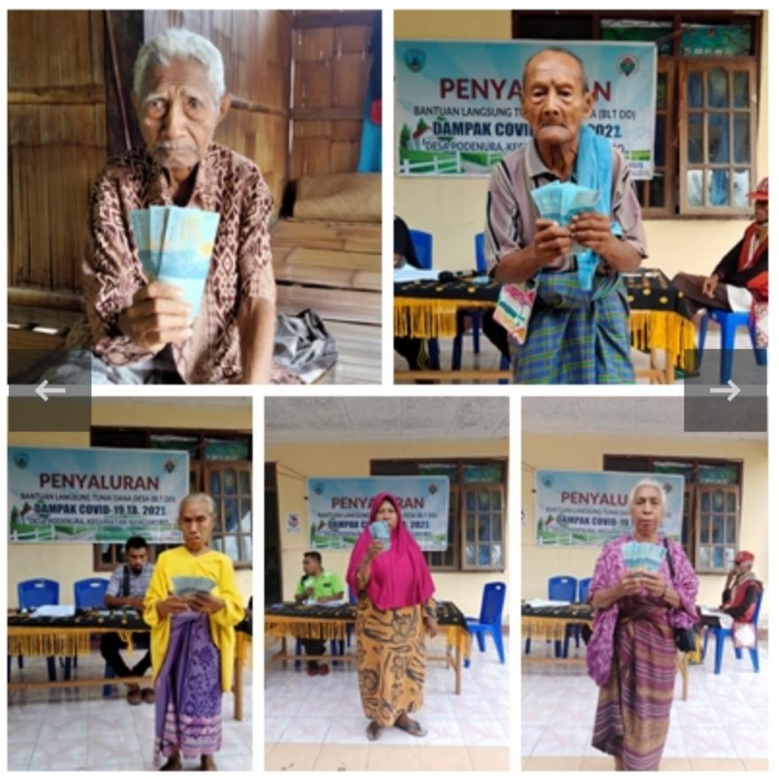 Dalam kesempatan tersebut Sekretaris Desa Podenura menyampaikan agar para penerima bisa menggunakan Bantuan ini untuk modal usaha produktif sehingga bisa menambah penghasilan keluarga nantinya.