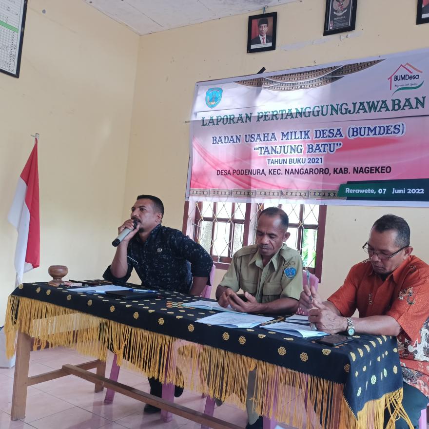 Bumdes Tanjung Batu Podenura menyelenggarakan Laporan Pertanggung Jawaban Tahun 2021.Kegiatan ini dihadiri Oleh Sekcam Nangaroro bersama Staf Kecamatan,BPD Desa Posenura,Kepala Desa Podenura dan Perangkat,Ketua RT serta Pelaku Program Desa Podenura
