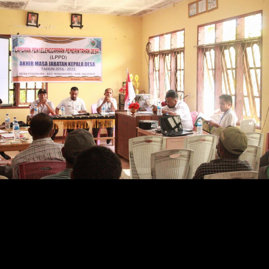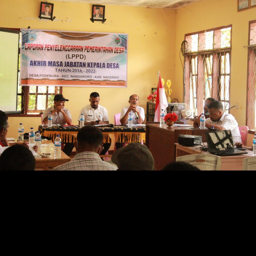 Pemerintah Desa Podenura menyelenggarakan Rapat Laporan Penyelenggaraan Pemerintah Desa ( LPPD ) Akhir Masa Jabatan untuk Periode 2016 - 2022 pada Rabu (28/09/2022).Kegiatan yang dilaksanakan di Aula Kantor Desa Podenura ini dihadiri oleh Pemerintah Kecamatan Nangaroro, Kepala Desa bersama perangkat, Ketua BPD bersama anggota, Lembaga lembaga dalam desa, serta para pelaku program.