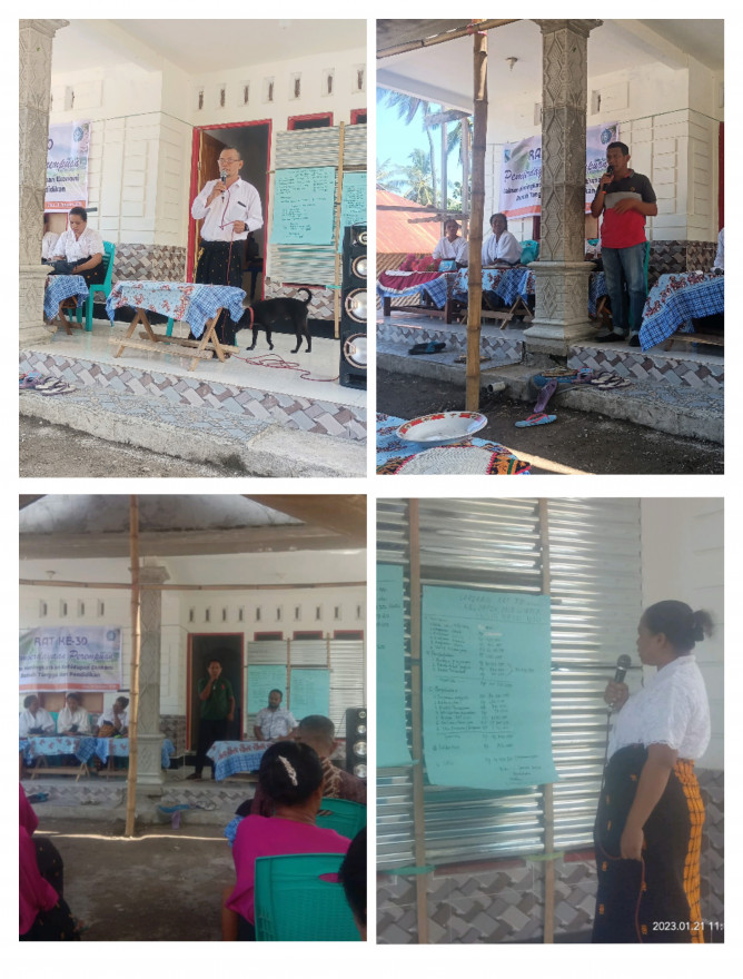 USU - Koperasi PKK Ingin Maju Dusun Usu, Desa Podenura menggelar Rapat Anggota Tahun ( RAT ) Tahun Buku 2022 yang dihadiri Pemerintah Desa Podenura, BPD , Pengurus, Pengawas, Pendamping,anggota kelompok, para suami dari anggota kelompok, utusan masyarakat dusun Usu. Kegiatan yang mengusung tema " Pemberdayaan Perempuan Dalam Meningkatkan Kehidupan Ekonomi Rumah Tangga dan Pendidikan " diselenggarakan di kampung Usu ,Sabtu (21/01/2023 ) .