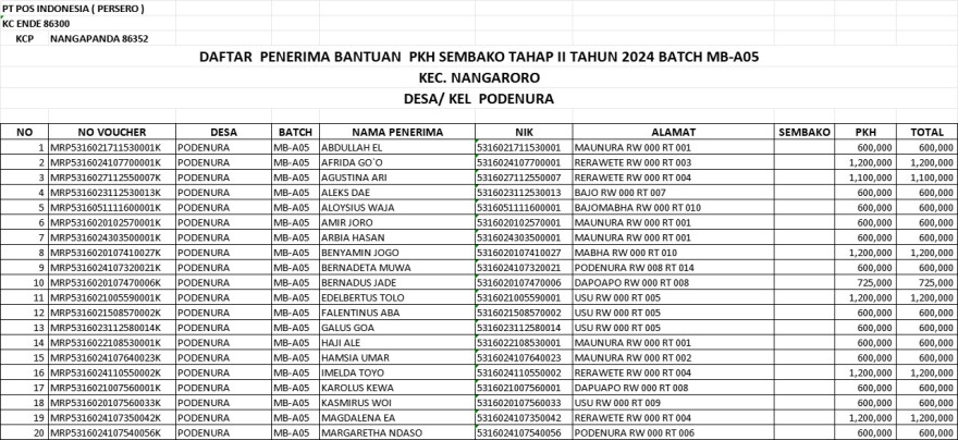 Penerima bantuan wajib hadir sesuai waktu yang ditentukan dan membawa serta dokumen kependudukan seperti KTP ,Kartu Keluarga serta Surat Kuasa untuk perwakilan yang bukan anggota Keluarga .Nama penerima ada dalam gambar