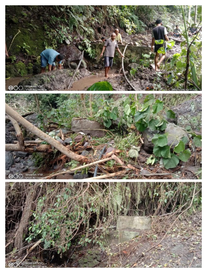 Sementara itu kerusakan berat juga terdapat di Captering mata air Dowo Ae Petu.Captering yang memasok air bersih untuk sebagian wilayah desa Podenura dan beberapa desa tetangga seperti Riti,Kotodirumali dan Tonggo mengalami kerusakan berat tertimbun material longsoran.Sebagian pipa juga terpantau masih tertimbun material longsoran dan sejauh ini pasokan air bersih terputus .Beberapa warga sudah melakukan upaya untuk membersihkan material longsoran di Kaptering mata air tersebut tetapi pasokan air belum bisa normal sehingga dalam waktu dekat akan dilaksanakan kegiataan kerja bakti guna pembersihan Captering mata air
